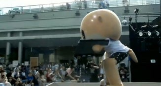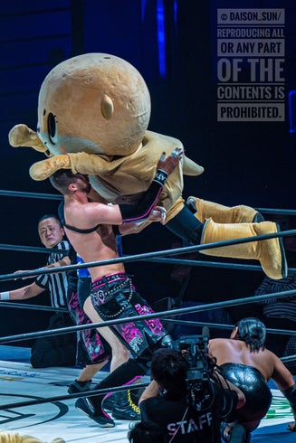 Chiitan's debut in the DDT Pro-Wrestling tournament didn't go unnoticed. Even before the match, the press conference was a performance in itself. Chiitan appeared with one of its famous metal boxes and it was quite a nightmare for the organizers to have the mascot sit down. At the same time, Chiitan's manager explained that the baby otter was ready for Chris Brookes anytime :"There is nothing to fear! It is going to kill Chris Brookes. So get ready".